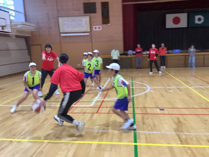 2025年10月31日 16時57分10月31日(金)にデンソー体育支援事業がありました。デンソーのバスケットボールチームで活躍されていた方に来ていただき、バスケットボールを教えてもらいました。ほとんど経験したことない児童ばかりでしたが、分かりやすく教えてくださり、笑顔あふれる楽しい時間となりました。今日教えてもらったことを、今後の授業に生かしていきたいです。