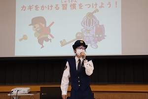 4年~6年生は、岡崎警察署の方を講師に招き、講習会を実施しました。不審者は、よくイメージされる見た目が不審な装いの人はほとんどおらず、見た目はごく普通の人が多いなどのお話をいただきました。