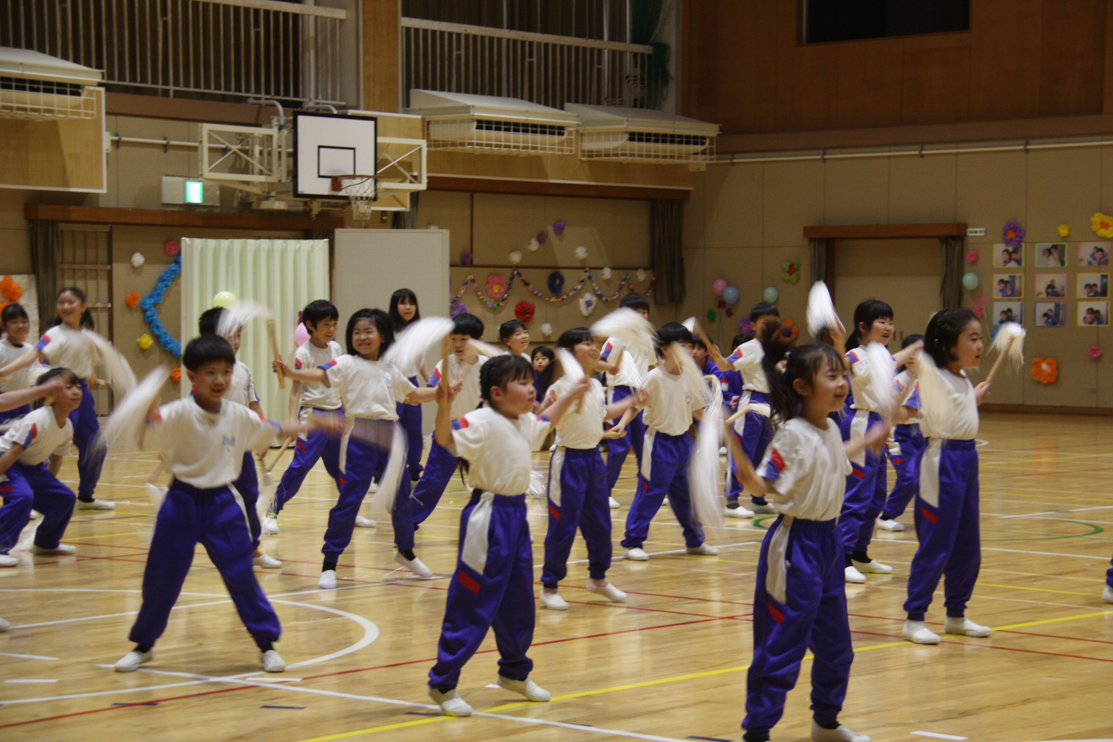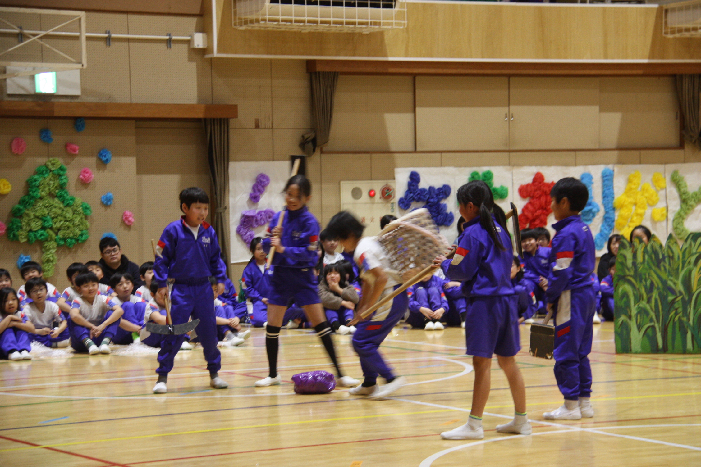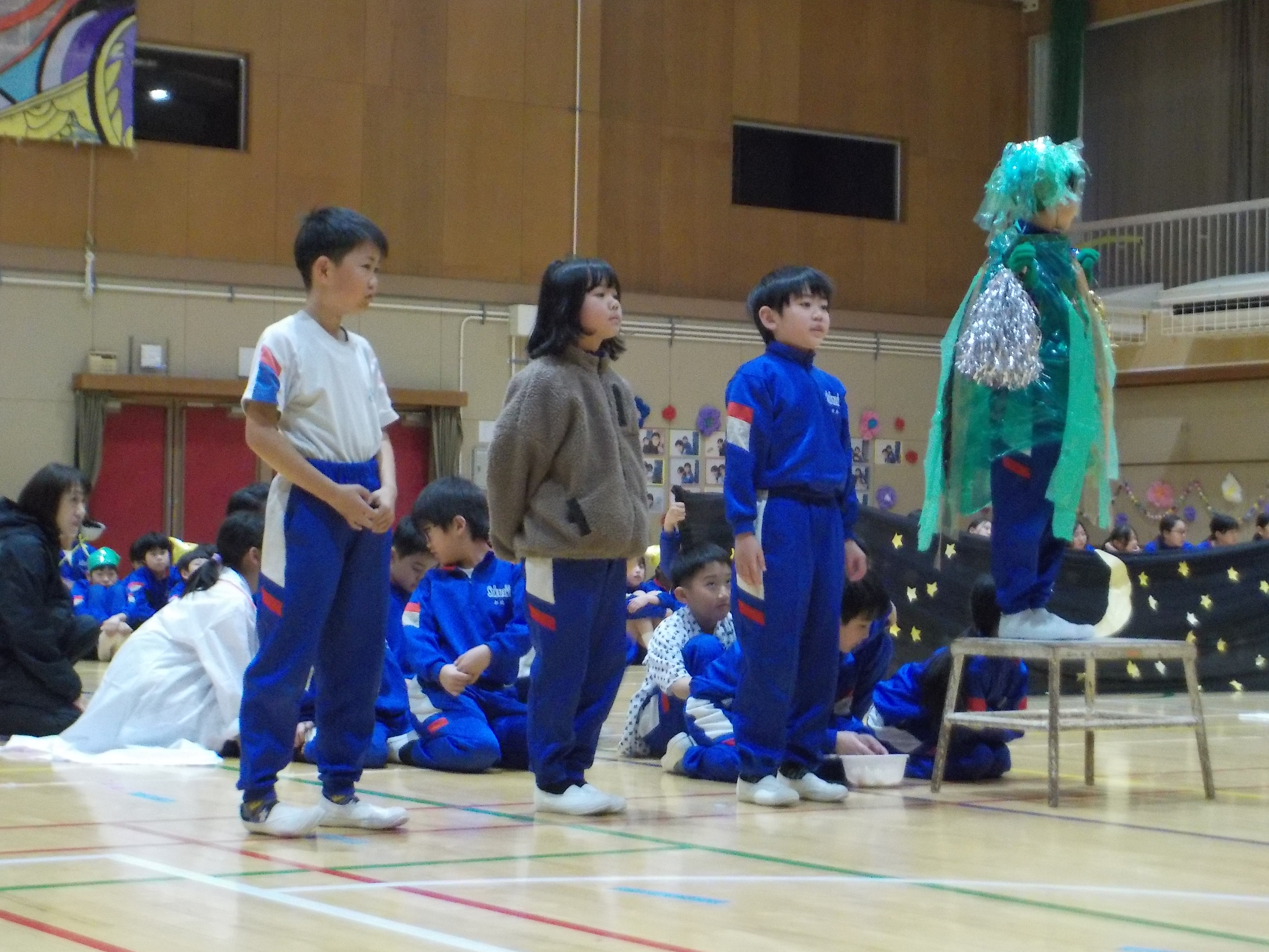 もと、クイズや劇、ダンスなど、工夫いっぱいの出し物で各学年から6年生に「ありがとう!」の気持ちを贈りました。在校生や、懐かしい先生方からのメッセージを聞いて、思わず涙を流す子たちもいるほど、楽しい雰囲気の中にも感動的なシーンもある、坂崎小らしい温かい会になりました。この会を企画、準備、運営した5年生の子どもたちの活躍も光っていました。